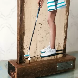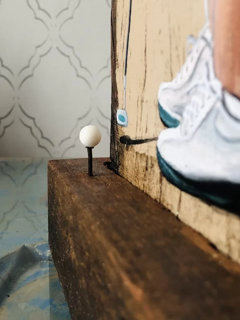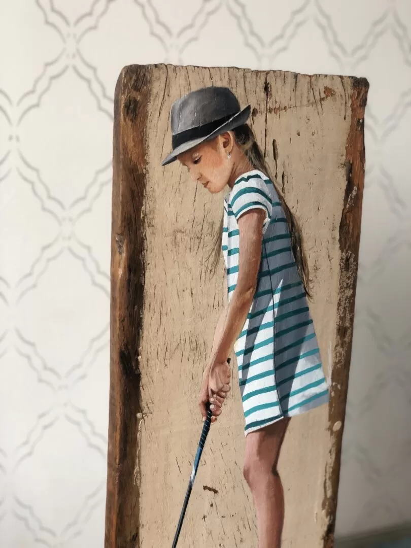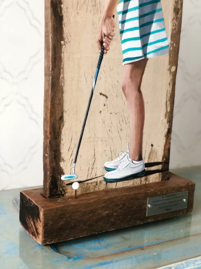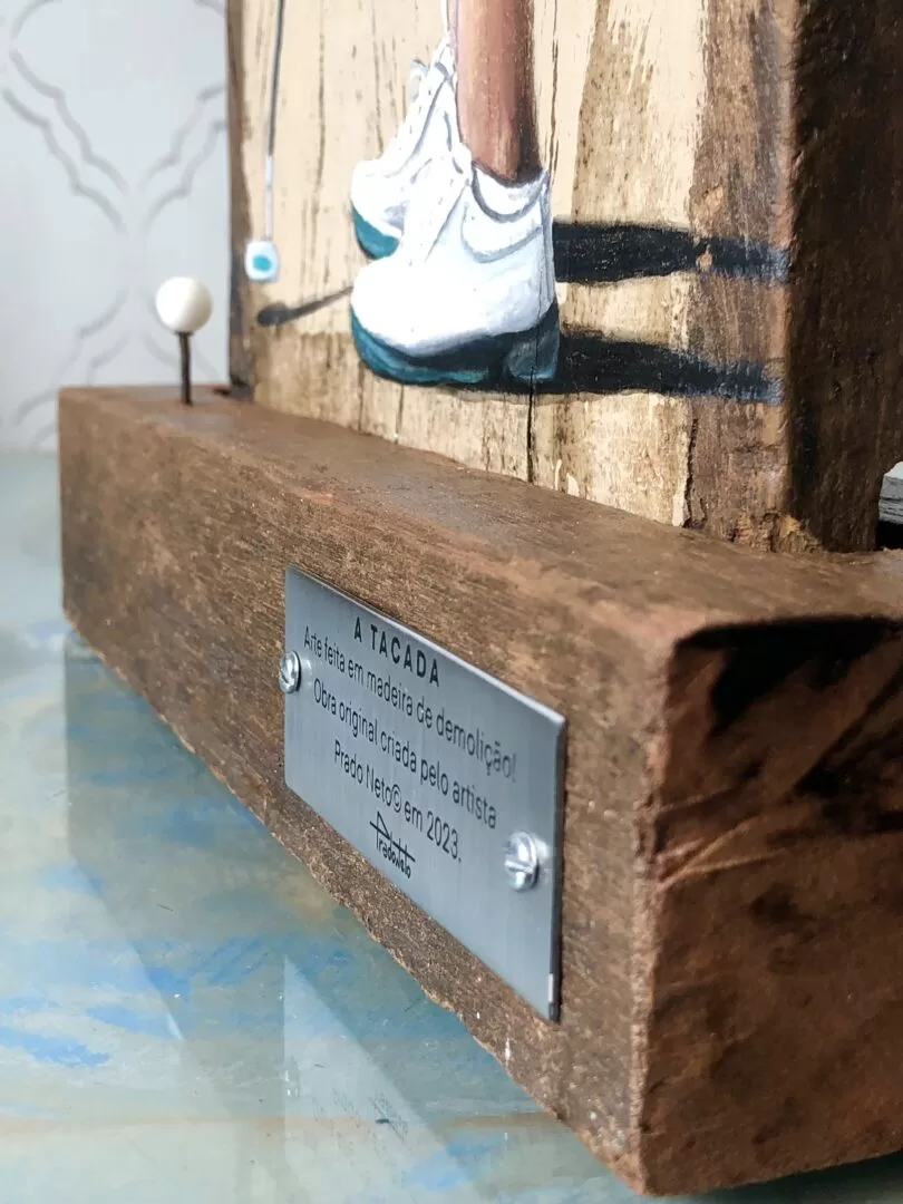 -Acrílica sobre madeira de demolição e finalização em resina.