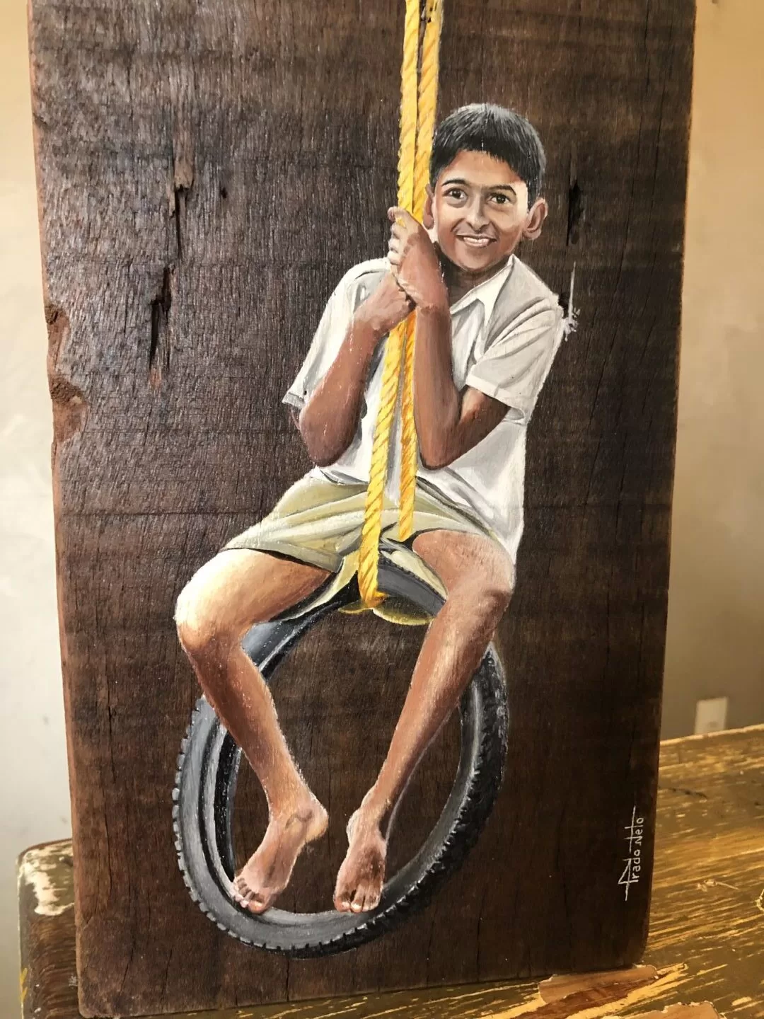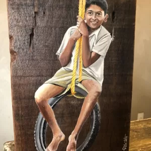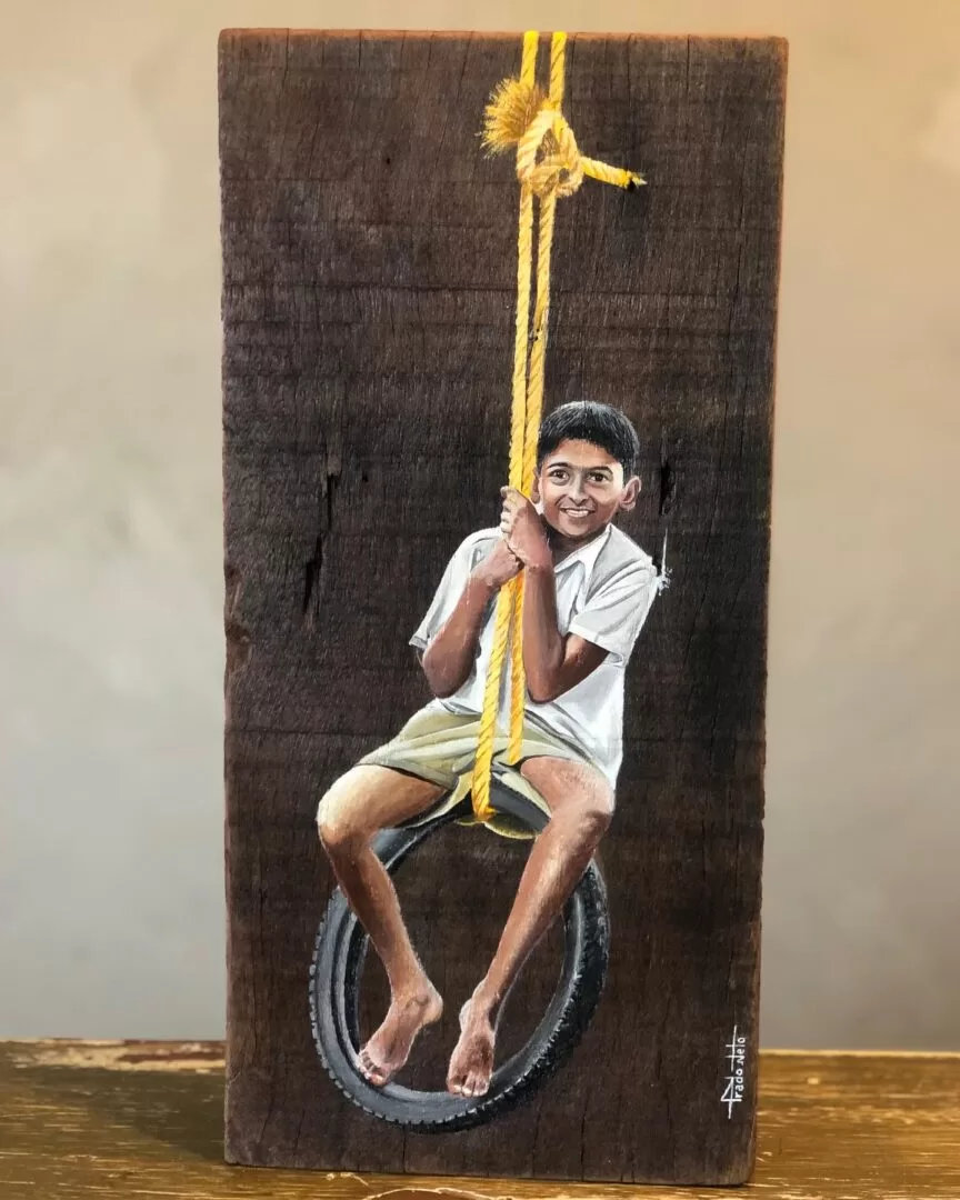 -Acrílica sobre madeira de demolição e finalização em resina.